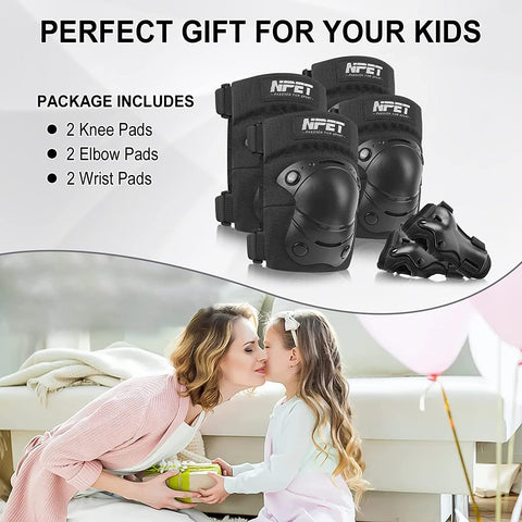 NPET 6 Pack Child Protective Gear Set Knee Pads Elbow Pads Wrist Guards