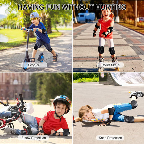 ♥ Multifunctional Protective Gear: FOR KIDS/CHILD, the knee elbow pads with wirst guards are designed for kids sports saftey protection especially for ice and roller cycling skating, Skateboard Hoverboard, biking, cycling, skating, rolling, ATV, BMX and other extrem sports