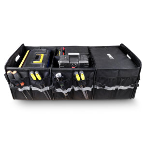 Have you ever been annoyed because of a messy car trunk? Our product is the best storage choice for you to clean and tidy. Our organizer has 3 main compartments, 12 mesh pockets. The large capacity can hold everything you want. Constructed of waterproof oxford polyester, the organizer is sturdy and strong. The secure straps and non-slip pads keep organizer from rolling around when driving.