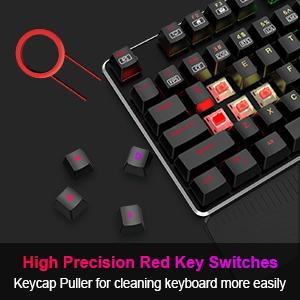 The red mechanical switch features a quiet and linear typing experience. The bottom feedback offers easier and smoother use than other tactile switches. Perfect for people who work in an open office and gamer.