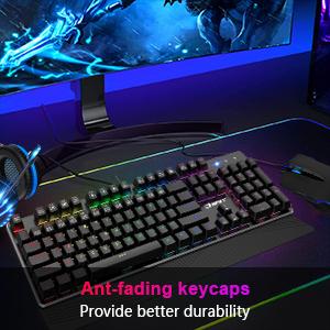 Anti-ghosting all 104 keys are conflict-free key rollover featuring, and a non-slip ergonomic, splash-proof design comes with a high-speed corrosion free USB connector for a reliable connection