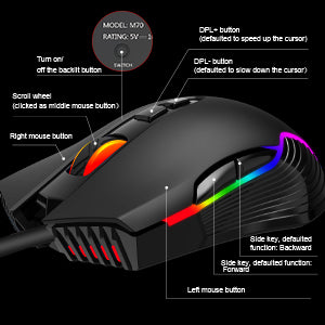 Upgraded version of NPET M70, with Chroma RGB lighting, up to 16. 8 million colors to fit your mood. Easily shut on AND off the backlight or change the color mode with the convenient switch on the bottom. Adopts an impressive optical gaming sensor, ensure a quick switch for different games.