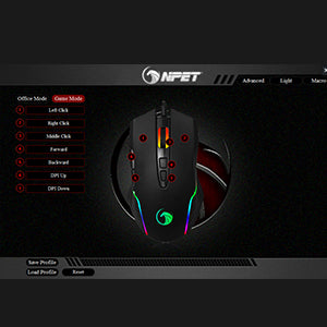 Support macro editing, 7 mouse buttons can be programmed with NPET easy-to-program gaming software. The Rapid-fire button gives you the edge you need during those intensive FPS battles. Just play with precision and flair. Offering on-the-fly DPI and profile switching with DPI Color indicator so you always make the right moves and can focus on your gameplay.