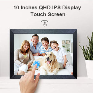 The 10" QHD IPS LCD touch screen with 2K 2048x1536 resolution, 4:3 aspect ratio, can display amazing clear and vivid landscape and portraits, recalling your precious memories. Browse through photos, delete videos, or pause the slideshow, with a quick tap of the finger.