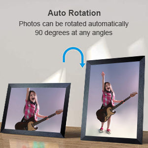 NPET digital picture frame can automatically rotate photos to adjust the direction, and the border will be filled to blur the background. No black patches on each side. No chopped off heads. You can even adjust to show which part of the picture. You can choose either portrait or landscape placement with the Auto-rotate setting turning on, with a detachable solid rack as a frame stand, allowing you to view the photos in either portrait or landscape mode, and photos can automatically rotate.