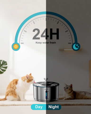 - 【Durable Material】: The fountain is made of 304 stainless steel material which is durable and rust-preventive. Also, The stainless steel parts are food-grade and dishwasher-safe, cleaning and assembling are quite easy. The faucet is made of PP, which makes the water run style match the cat's drinking habit. It can attract and encourage your pets to drink more water.