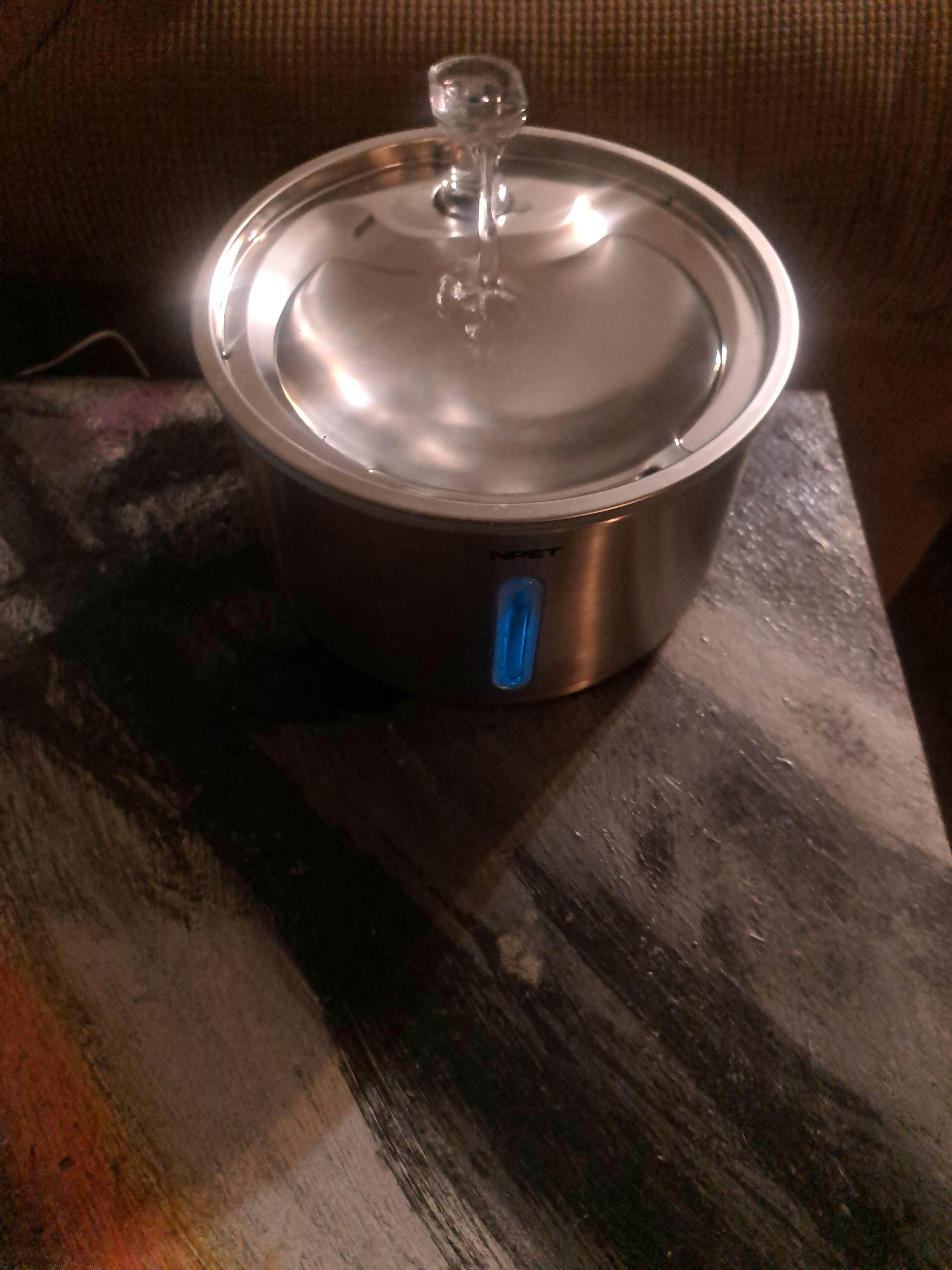 Works great and we are so glad that it is stainless steel and it will stay fresh. Our cats seem to prefer the moving water of this fountain over the still water in a bowl.